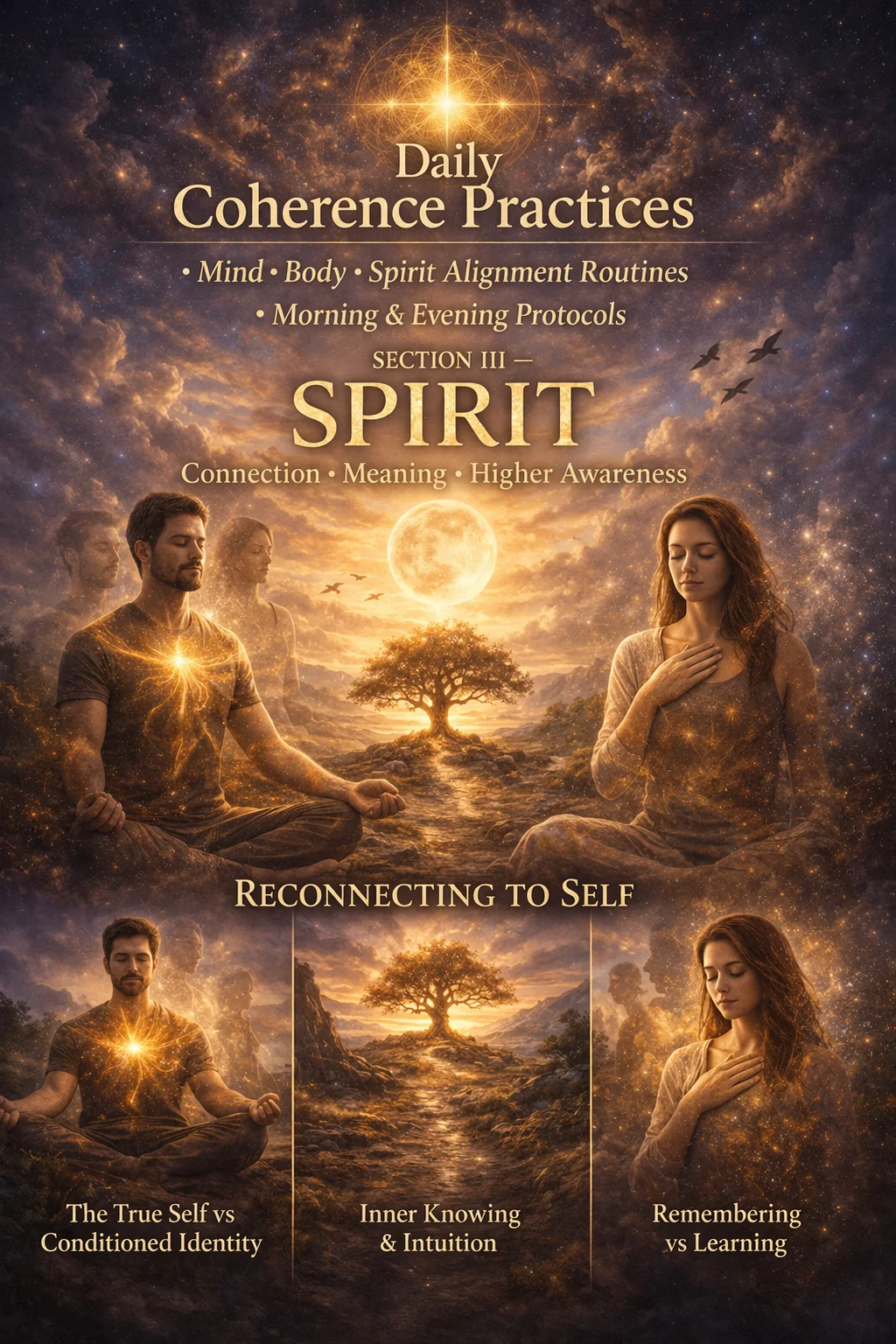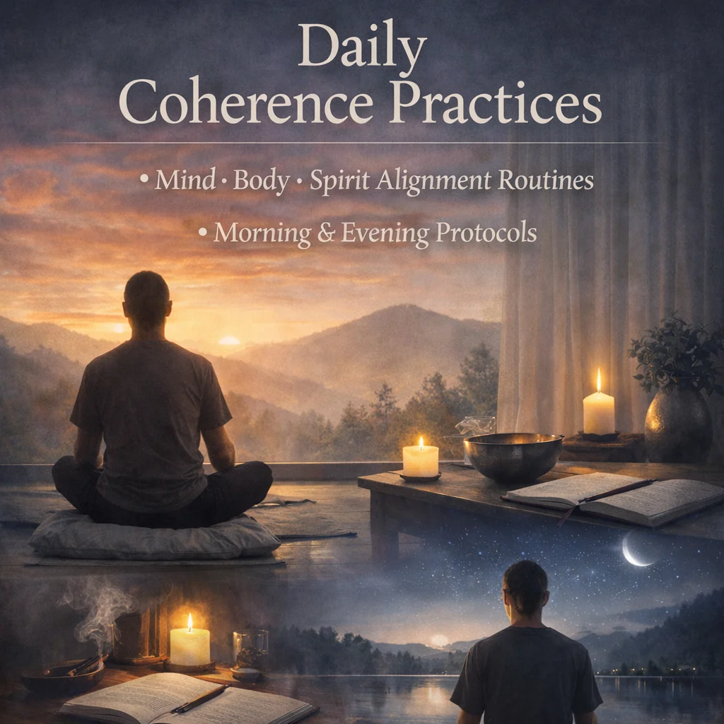 Daily coherence practices are the bridge between understanding and embodiment. While insight can create moments of clarity, it is consistency that stabilizes change. Coherence is not something achieved once—it is something maintained through repeated alignment of mind, body, and spirit. These practices create structure within the day, allowing awareness, regulation, and intention to become integrated into how you live, rather than something you only access occasionally.