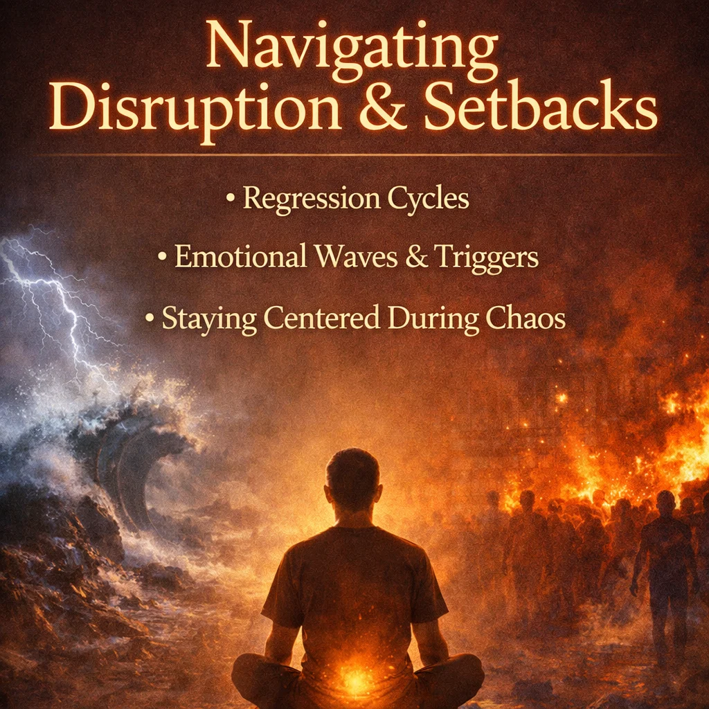 Disruption and setbacks are not interruptions to the healing process—they are part of it. As deeper layers of conditioning, stored emotion, and unresolved patterns surface, there will be periods where clarity feels lost or stability seems to regress. This is not failure; it is exposure. What was previously hidden is becoming visible, giving you the opportunity to meet it with awareness rather than avoidance. Progress in this work is not linear—it moves in cycles, often revisiting similar themes at deeper levels.